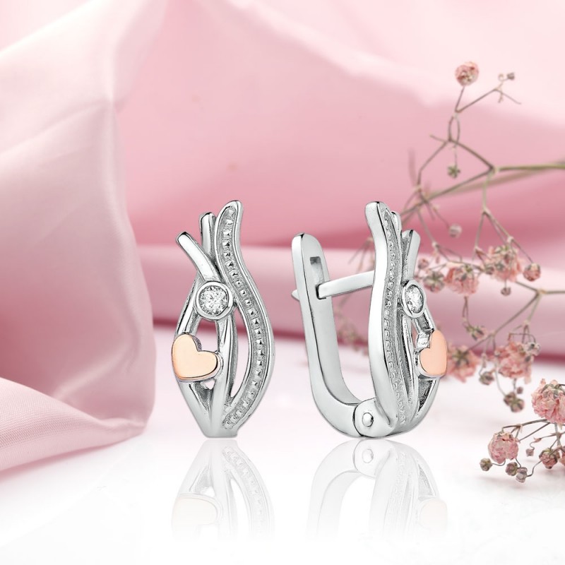 Fijne oorbellen zijn gemaakt van 925 zilver en 375 goud, versierd met betoverende fonkelende zirkonia's! Deze oorbellen stralen chic en onweerstaanbaarheid uit. Hiermee ben je aantrekkelijk in elke outfit!
