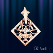 Sterrenbeeld "Kreeft" gemaakt van Russisch goud 585° met zirkonia. Lengte ca. 16 mm, breedte ca. 12 mm.