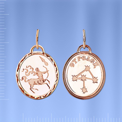 Sterrenbeeld "Boogschutter" gemaakt van Russisch roodgoud 585°. Hoogte met oog ca. 25,0 mm. Breedte ca. 15,0 mm