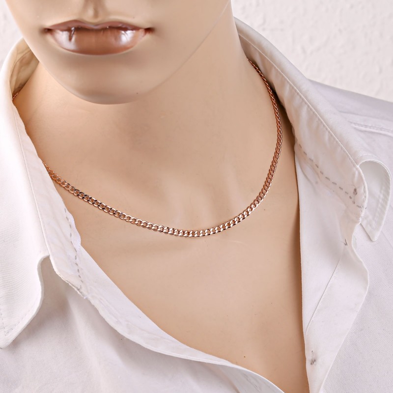 Russisch goud 585 kettingen tank. Stabiele gouden ketting gemaakt van 585 Russisch rood goud met sprankelende diamantsnede. Ketens gemaakt van goud hebben het nodige accent op de foto gezet en de aandacht vestigen op de rijkdom en luxe van de accessoires, omdat goud mooi, stijlvol, chic en duur is.