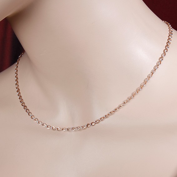 Ketting Russisch goud 585 bicolor. Gouden ketting van 585 rood- en witgoud met karabijnsluiting combineert een klassieke vorm met sprankelende accenten.