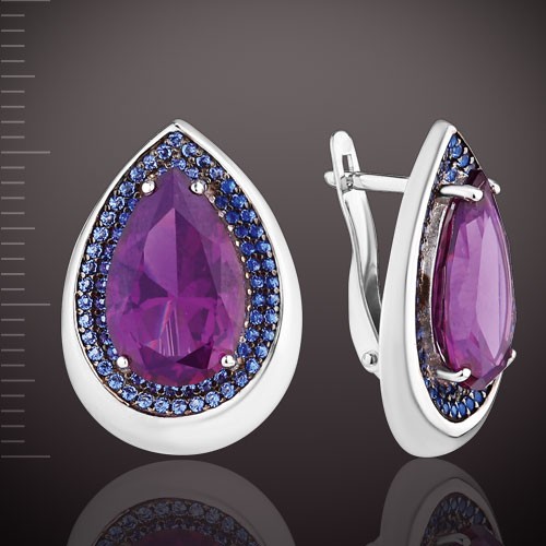 Oorbellen gemaakt van 925° zilver versierd met 2 amethisten nano 14,0 x 9,0 mm, 138 saffieren nano