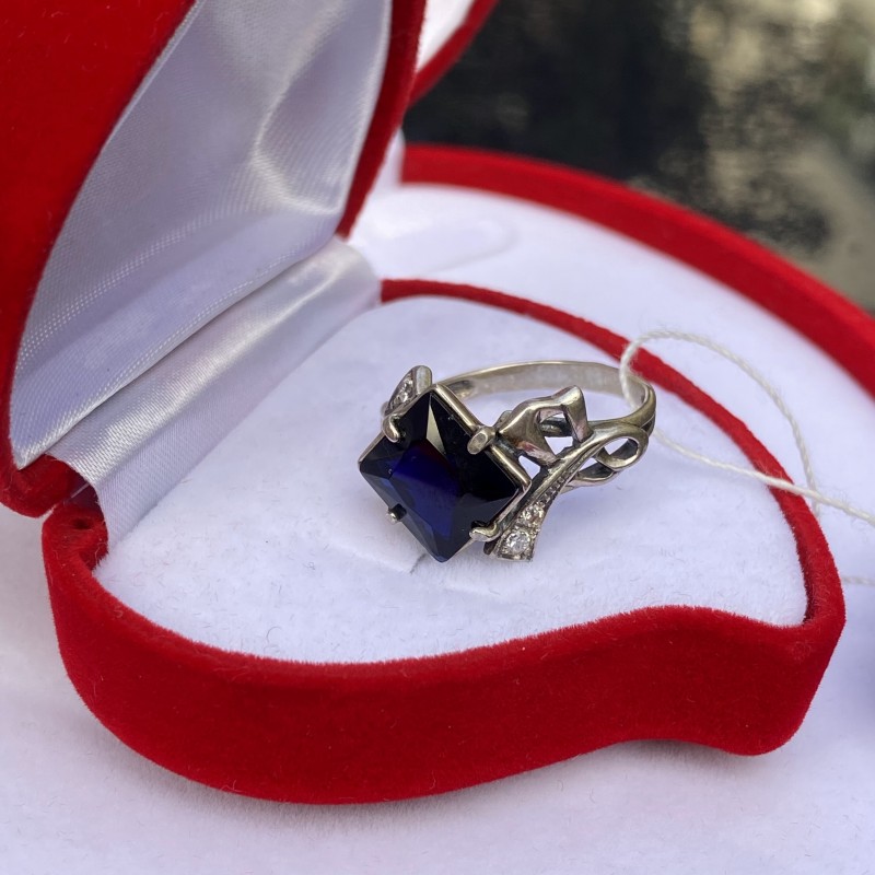 Een heerlijk delicate ring met een betoverende saffier en fonkelende zirkonia. De ring oogt laconiek en stijlvol in een prachtige omlijsting van gezwart 925 sterling zilver.