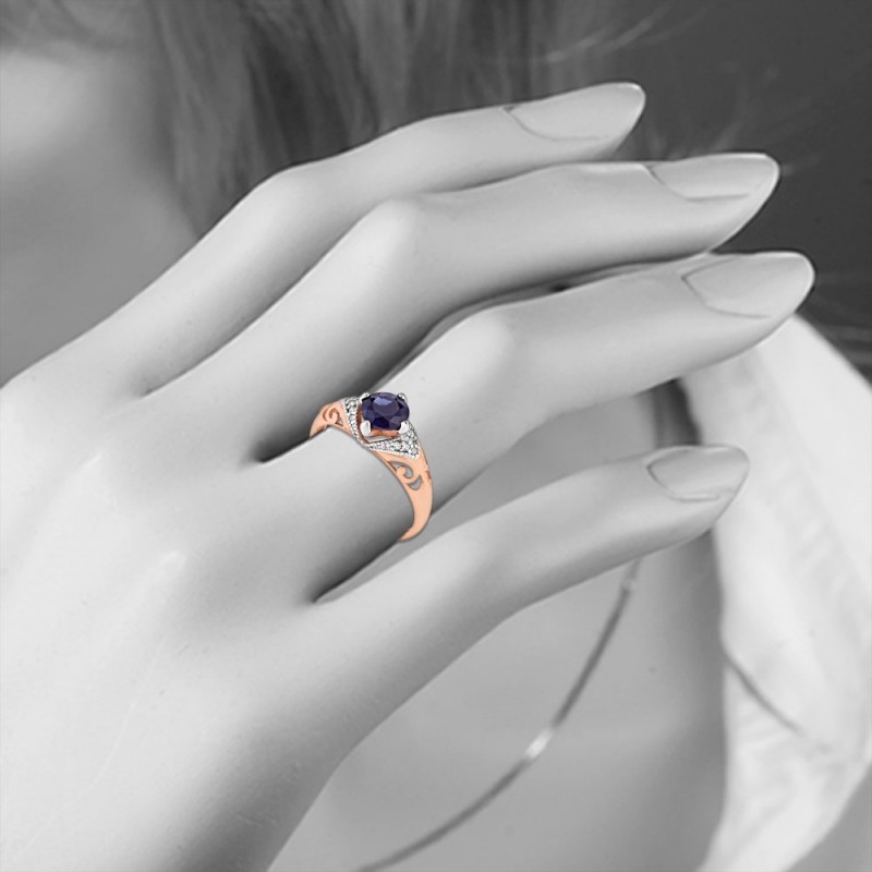 Charmante zilveren ring van 925 verguld zilver, versierd met zirkonia en nano-saffier.