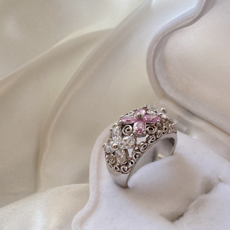 Inzet: 8 ovale zirkonia 5,0 x 3,0 mm / 4 roze zirkonia 5,0 x 3,0 mm
