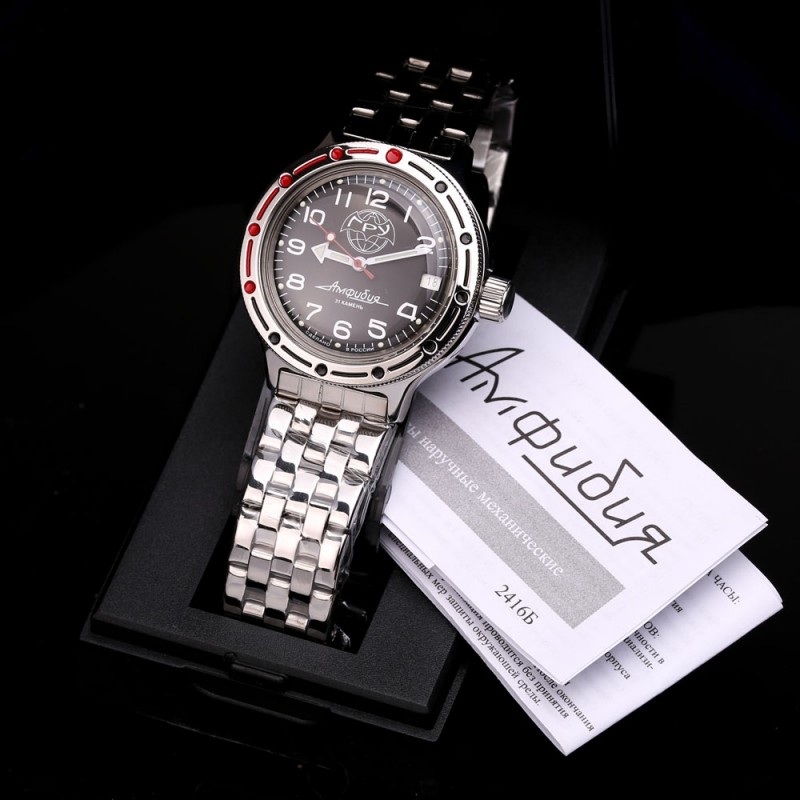Russische horloges “Amphibian” zijn een unieke combinatie van onberispelijke kwaliteit en stijlvol, modern design. De behuizing is gemaakt van hoogwaardig staal en organisch glas en is ontworpen voor diepzeeduiken en is bestand tegen sterke mechanische druk. Het Amphibian herenpolshorloge is de meest praktische en betaalbare keuze als je op zoek bent naar een origineel accessoire voor je look. Koop een herenhorloge "Amphibian" als cadeau voor een geliefde - zo'n geschenk zal nog lang herinnerd worden en zal de ontvanger vele jaren plezier bezorgen.
