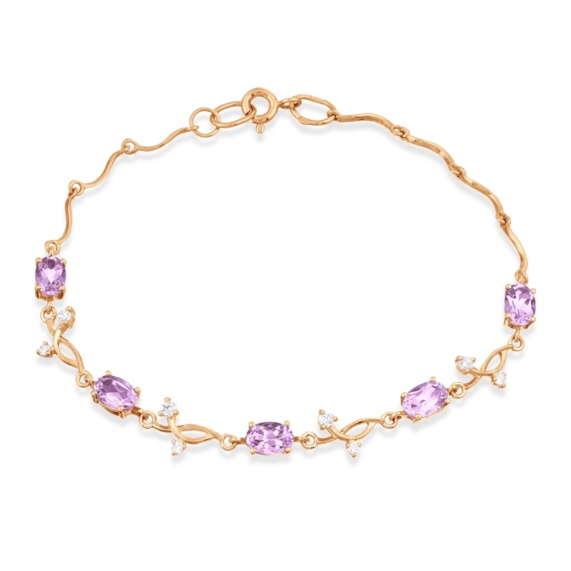 Gouden armband Russisch goud 585 in Duitsland Amethist zirkonia. Fijne en romantische armband van 14 karaat roodgoud met diamantgeslepen witgouden accenten en inzet van amethist en zirkonia in fantasievlecht. Een zachte toevoeging aan je vrouwelijke look.