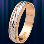 Unike gifteringer laget av hvitt og rødt gull. En del av ringen laget av hvitt gull - roterende "ring innenfor en ring". Gifteringen, med en fin diamantskåret ornament, skinner med sin uvanlige design og harmoniske fargelegging. Hvis du liker noe som er litt mer iøynefallende, er disse ringene det rette valget for deg.