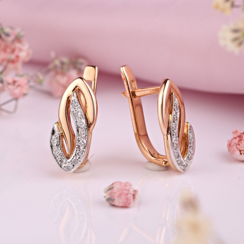 Elegante gulløreringer laget av 585 rødt/hvitt gull med diamanter.
