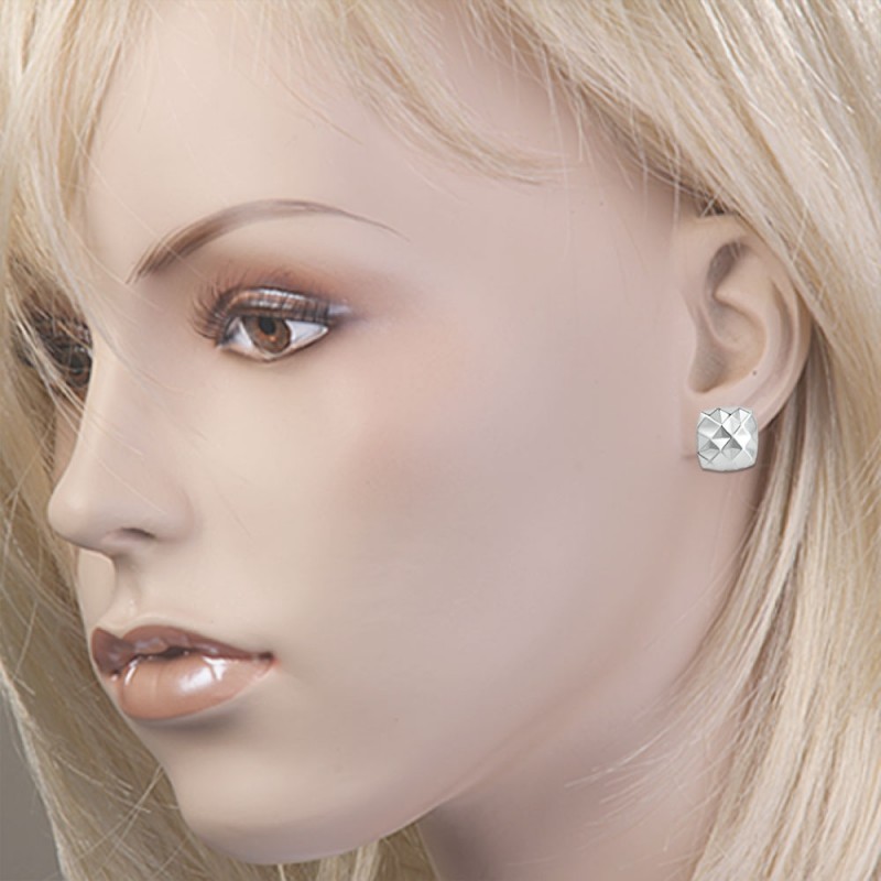 Sjarmerende øredobber laget av 925 sterlingsølv med en mangefasettert overflate, takket være hvilken verden rundt og lyset reflekteres på en spesiell måte. De understreker perfekt raffinementet, femininiteten og sjarmen til eieren sin.