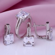 Sett laget av sølv 925 med fargeløs Fianit 8,0 x 8,0 mm, Fianit ¢ 1,0 mm
