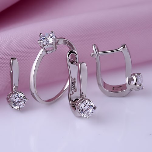 Sett laget av sølv 925 med fargeløs Fianit ¢ 5,0 mm