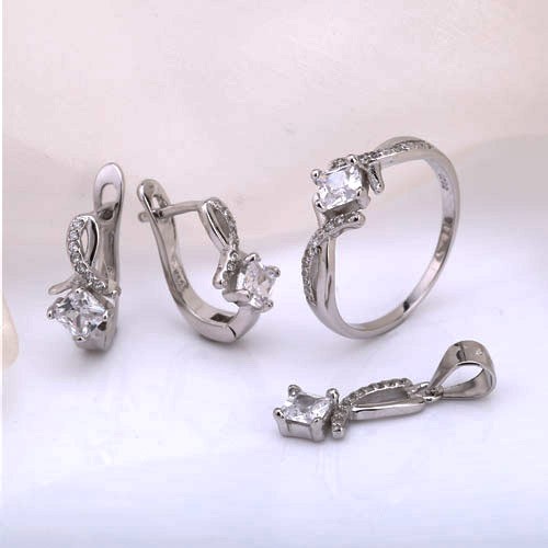 Sett laget av sølv 925 med fargeløse fianitter ¢ 1,0 mm, fianitter ¢ 4,0 mm