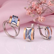 Sølvsett med gull. Et fortryllende sølvsett med røde -gold aksenter, bestående av øreringer og en ring, med innsatser fra en utrolig vakker stor blå zirkonium. 925 Sterling Silver, 375 gull. Et fantastisk romantisk tillegg til utseendet ditt!