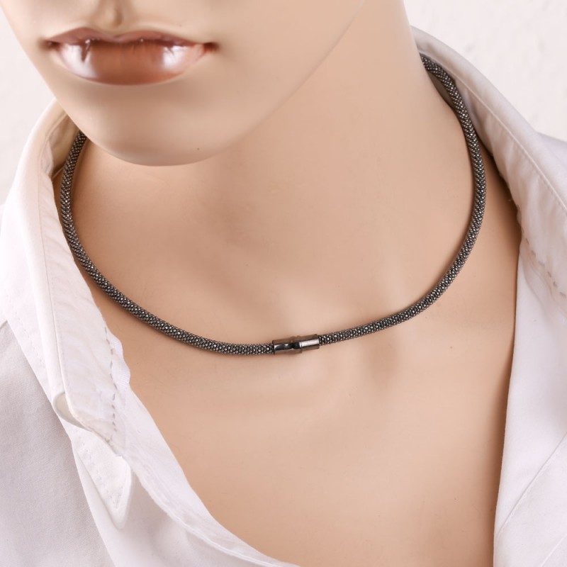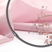 Et sjarmerende voluminøst, rørformet halskjede laget av svertet 925 sterling sølv, laget ved hjelp av en spesiell teknologi. Popcornveving er en variant av hult rundskallveving med en oppsvulmet overflate, som ekte popcorn. Dette stoffet brukes til å lage smykker som armbånd, halskjeder og øredobber. Takket være denne spesielle vevingen glitrer kjedet som om det var utstyrt med diamantinnlegg. Et veldig delikat halskjede som definitivt vil komplementere din romantiske look!