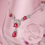 ► Et halskjede som umiddelbart fanger øyet - glitrende hjerter og rubinrøde steiner gir dette smykket et spesielt romantisk utseende!