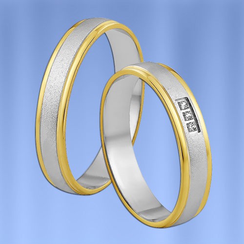 Tofarget ring laget av gult/hvitt gull 585° (matt / skinnende) med diamanter (3 x 0,005 ct)