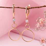 Gull 585 øredobber zirkonia. Disse øredobbene kombinerer moderne letthet med elegant geometri. De forsiktig svaiende sirklene danner en luftig silhuett, mens en strålende glitrende zirkonia i midten tiltrekker øyet. Innstillingen av steinen er raffinert med et elegant rhodiumbelegg, som skaper en kjølig skimmer og danner en sofistikert kontrast til det varme 585 røde gullet.