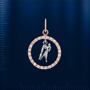 Vannmannen » laget av russisk gull 585° med 24 fianitter ¢ 1,0 m. Høyde med malje ca 22,0 mm. Bredde ca 15,0 mm