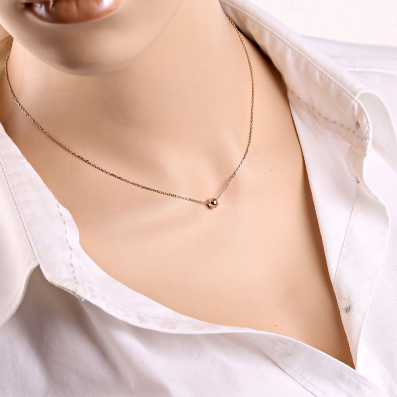 Gullkjede russisk gull 585 i Tyskland. Delikat og romantisk gullkjede laget av 14 karat rødt gull, dekorert med gull dekorative perler. Kjede - ankerflett med diamantslipt. Hvis du vil fremheve hennes femininitet, ynde, smil og skjønnhet hos din ledsager, så er en slik gave akkurat riktig for deg.