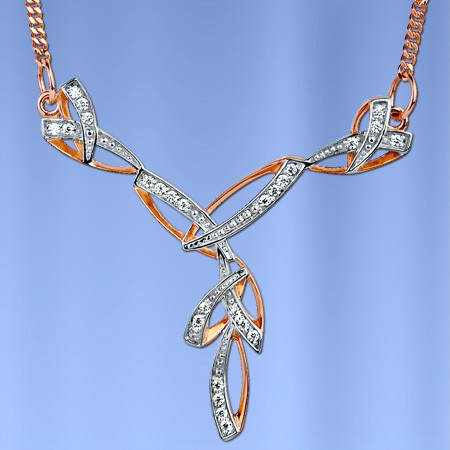 Elegant flatt halskjede laget av russisk rødt/hvitt gull 585° med fianitter ¢ 1,0 mm. Lengde ca 50,0 cm