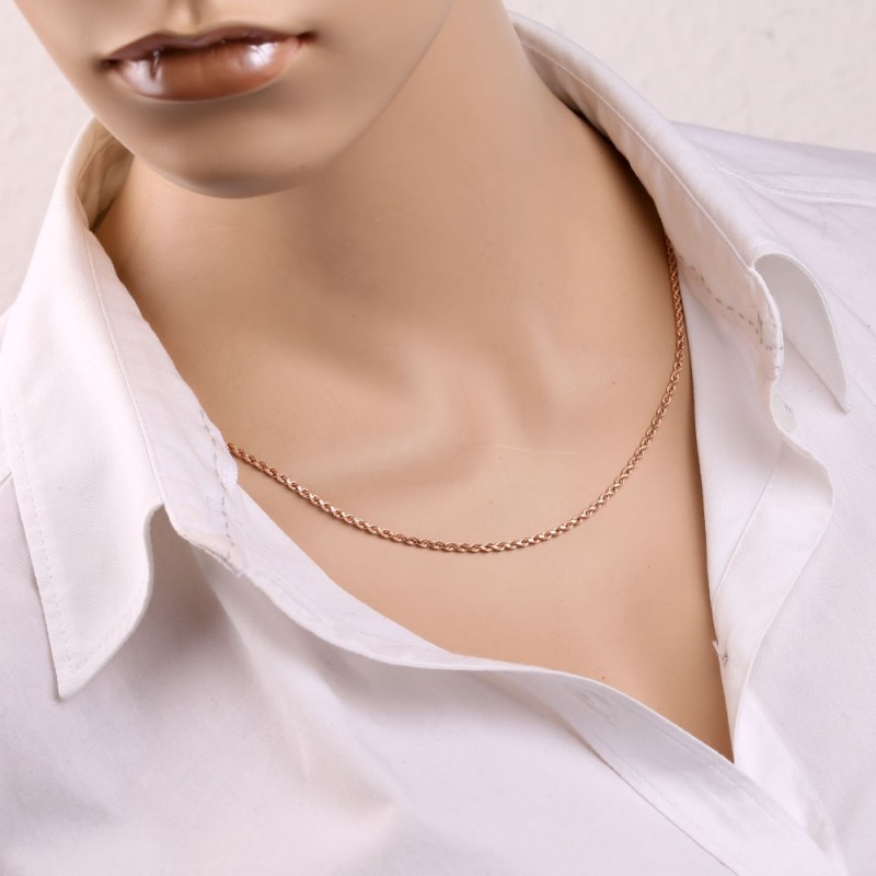 Elegant og feminint halskjede laget av klassisk flette CORD laget av 14 karat rødt gull! Produktet ser rikt ut og tiltrekker seg andres entusiastiske øyne ved å glitre og glitrende i solen.