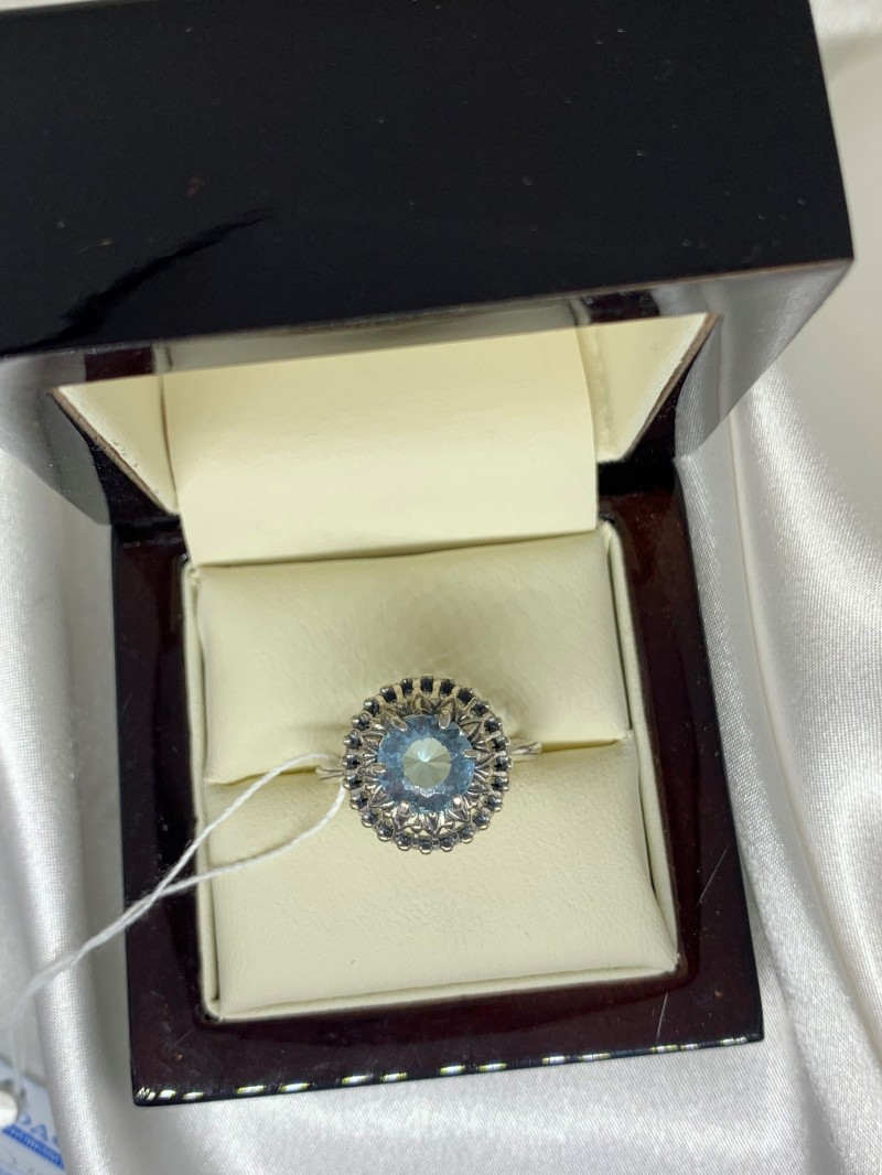 Herlig delikat ring med sjarmerende blå topas i en vakker sølvramme laget av 925 sølv.