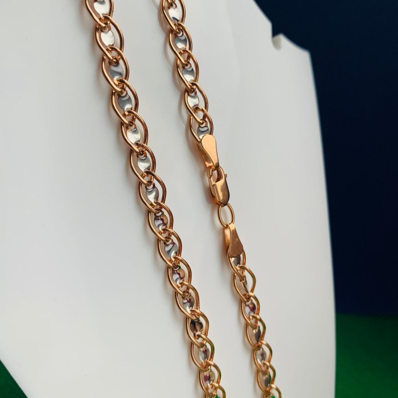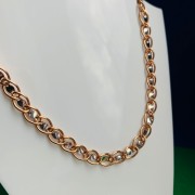 Russisk gull 585 halskjede skilpadde. De omfangsrike kjedene med skilpaddeveving består av russisk rødt gull i kombinasjon med hvitt gull 585 prøver. Takket være den spesielle produksjonsteknologien i kjeden oppnås et stort volum med lav vekt og tilsvarende lavere kostnader. Kjeder laget av gull satte den nødvendige aksenten på bildet og vekker oppmerksomhet til formuen og luksusen til tilbehøret, fordi gull er vakker, stilig, elegant og dyrt