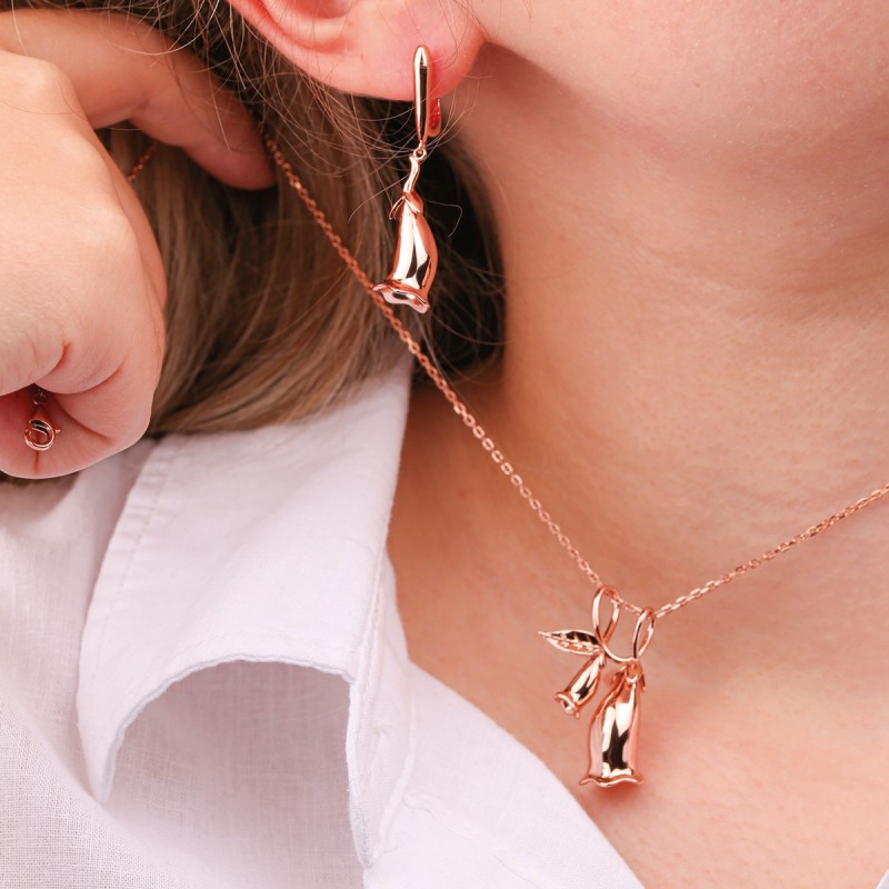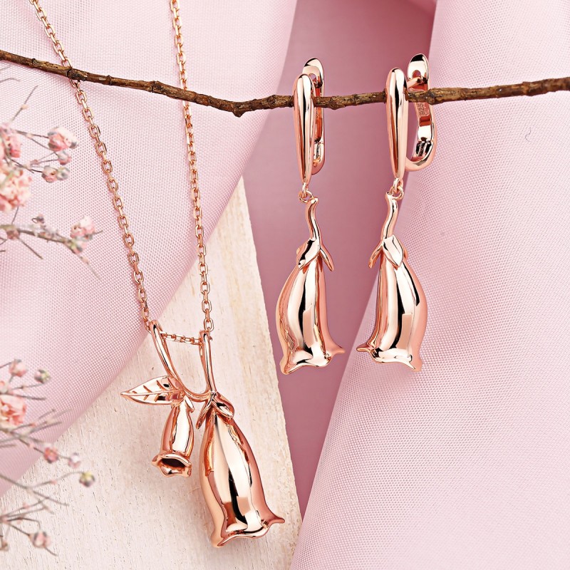 Forgylt sølv i Tyskland. Dette delikate blomsteranhenget laget av rød -gold -gilded 925 sølv med speiloverflate utstråler mild eleganse og feminin nåde. Forankringskjeden med et diamantskutt, som leveres som en gave, tilfører et glitrende høydepunkt og lar smykkestykket skinne med hvert lys.