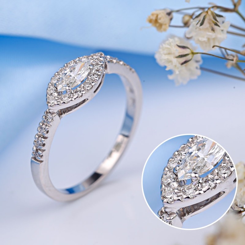 Wstawka: 1 diament markizowy o masie 0,21 ct. Gsi 6,0 x 3,0 mm; 20 diamentów 0,20 ct. Gsi