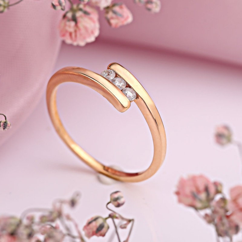 Elegancki pierścionek wykonany z czerwonego złota próby 585 z brylantami. Piękny prezent dla bliskiej Ci osoby!