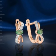 Urocze kolczyki wykonane z białego i czerwonego rosyjskiego złota próby 585, ozdobione diamentami i szmaragdem. Wspaniałe połączenie złota i nieziemskiego piękna kamienia - szmaragdu, potrafi podbić każdego.