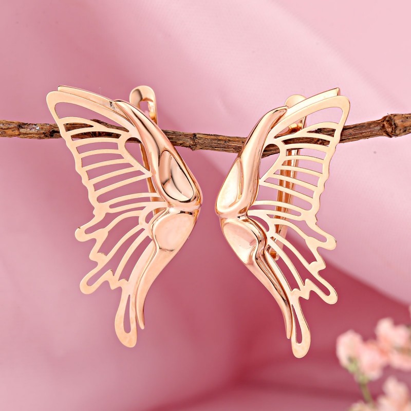 Sprzedam kolczyki z czerwonego złota próby 585. Te kolczyki przypominają uchwycony rytm skrzydeł - lekkie, płynne i prawie nieważkie. Jego kształt przypomina motyla w momencie wznoszenia się, gdy na chwilę wszystko ucichnie.