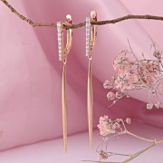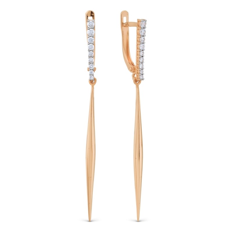Złote kolczyki wykonane z czerwonego złota próby 585 z cyrkoniami w Niemczech. Kobiece, eleganckie kolczyki wykonane z czerwonego złota próby 585, ozdobione mieniącymi się cyrkoniami. Podkreśli Twoją elegancję i kobiecość oraz przyciągnie zapierające dech w piersiach spojrzenia.