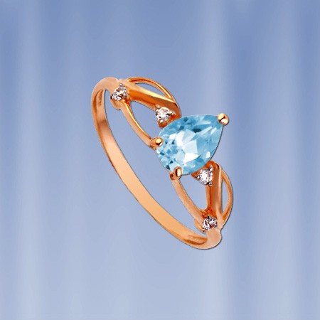Pierścionek wykonany jest z rosyjskiego czerwonego złota próby 585° z Topazem (7 x 5 mm) Wysokość ok. 7 mm