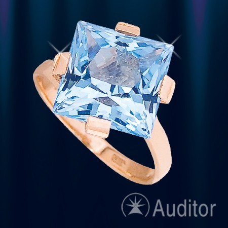 Ten pierścień wykonany z czerwonego rosyjskiego złota 585 ° i ozdobiony topazem.