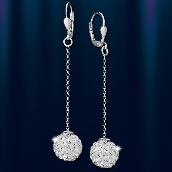 Piękne kolczyki wykonane ze srebra próby 925 z cyrkonią. Długość ok. 60 mm. Średnica 9mm.
