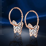 Romantyczne kolczyki koła z czerwonego/białego złota, wykonane z 18-karatowego złota z motylkami wyszlifowanymi diamentami.