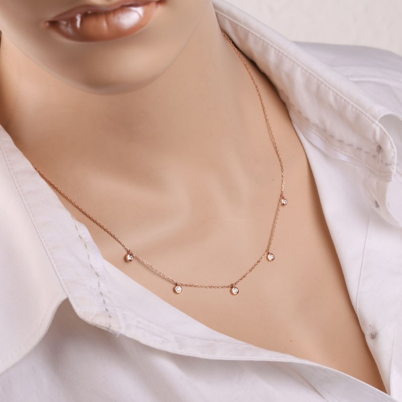 Rosyjskie złoto próby 585 w Niemczech złoty naszyjnik z cyrkonią. Elegancki naszyjnik wykonany z rosyjskiego czerwonego złota próby 585 z cyrkoniowymi wstawkami. Tkanie kotwic
