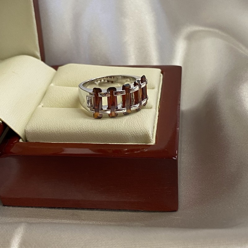 Zachwycający, luksusowy pierścionek z uroczymi, błyszczącymi, wielkoformatowymi cyrkoniami sześciennymi w kolorze koniaku. Pierścionek wygląda zwięźle i stylowo w pięknej oprawie wykonanej ze srebra próby 925, tworząc jasną i żywą kompozycję. Doskonale podkreśli delikatność, wdzięk i naturalne piękno Twoich dłoni! Oryginalny design pierścionka odzwierciedli Twoją indywidualność!