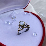Uroczy pierścionek wykonany z czernionego srebra próby 925, pokryty solidnym żółtym złotem, ozdobiony pięknym dużym topazem. Dzięki umiejętnie umieszczonym akcentom poprzez złocenie, pierścionek prezentuje się wyjątkowo pięknie. Doskonały dodatek do Twojego wizerunku kobiecości i romantyzmu.