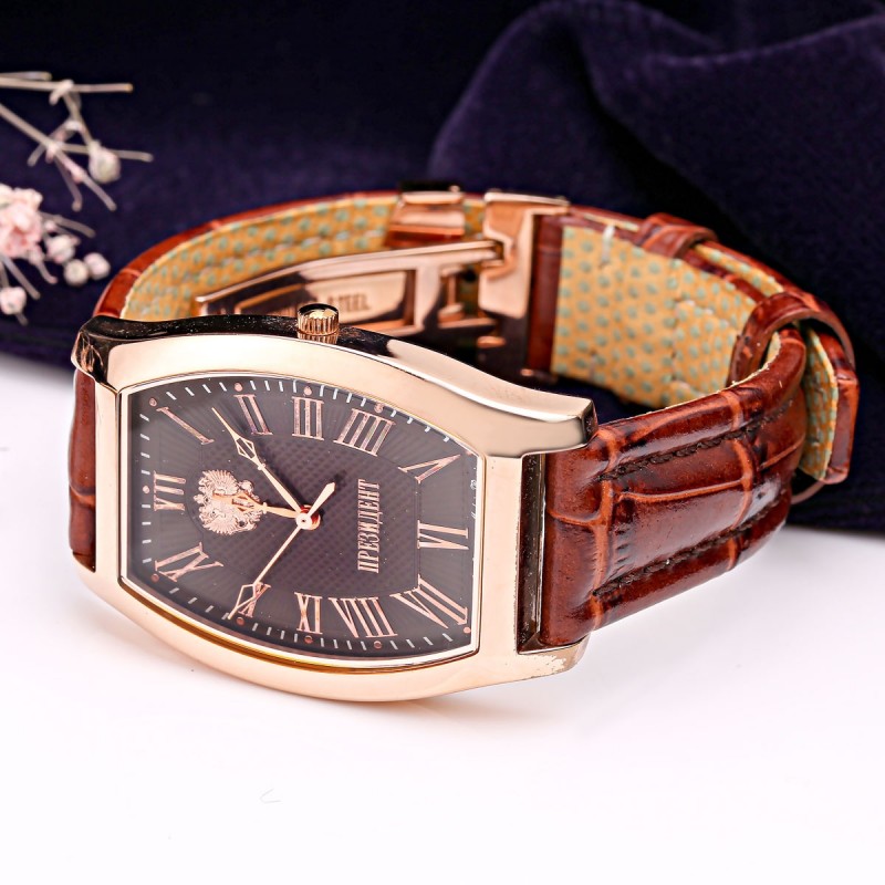 „Prezydent” mężczyzn „Prezydent” jest czymś więcej niż tylko zegarek - jest symbolem władzy, statusu i wymagającego smaku. Ekskluzywne obudowy z szlachetną powłoką różowego złota, skórzana bransoletka i herb Federacji Rosyjskiej na tarczy podkreśla specjalny charakter użytkownika. Limitowana edycja sprawia, że ten model jest rzadkim zegarem kolekcjonera i godnym prezentem dla każdego, kto docenia prestiż i indywidualność.