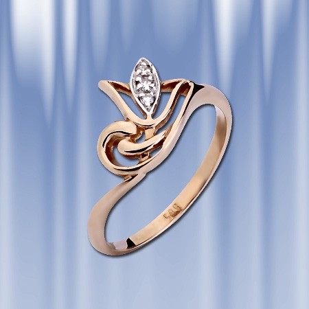 Um anel do ouro vermelho russo 585º com 0,035 quilats brilhantes.