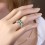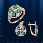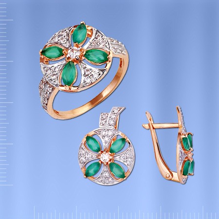 O anel é feito de ouro russo 585° com 4 crisoprase (5 x 2,5 mm), 27 zircônia cúbica ¢ 1 mm. Altura aprox. 15 mm. Bicolor
