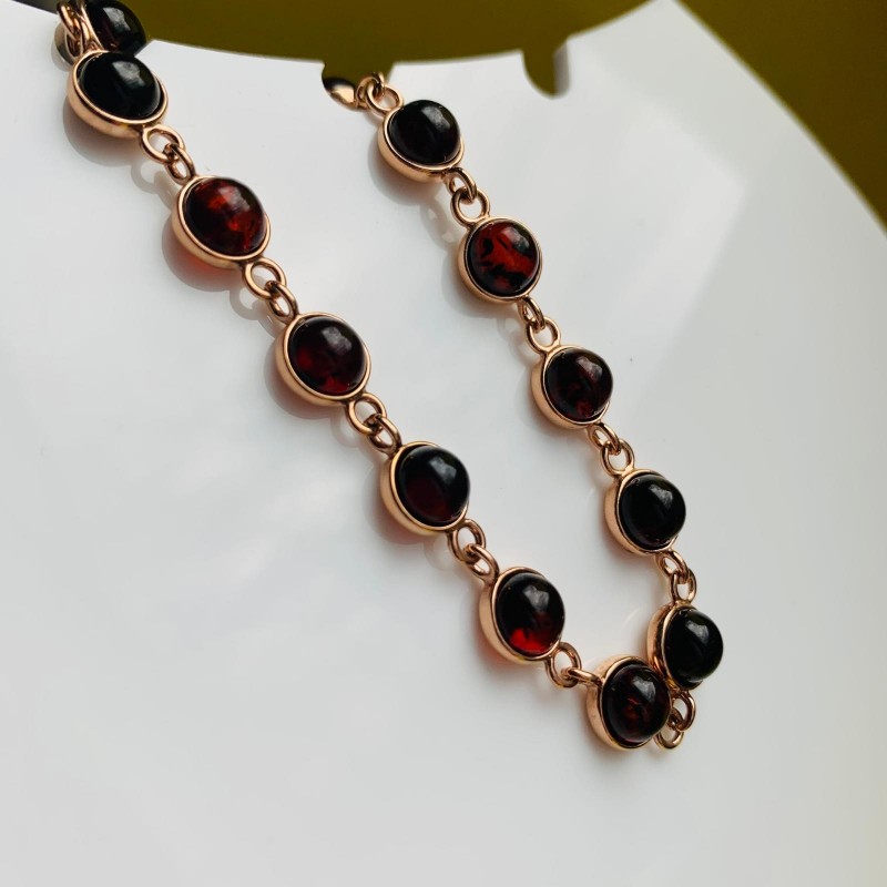 Pulseira de prata dourada 925 com âmbar. Uma pulseira feminina chique feita de prata 925 esterlina de ouro, com âmbar colorido por conhaque, você sempre o inspirará! Uma oportunidade única de enfatizar sua individualidade, transmitir a imagem da feminilidade, sol e ternura.