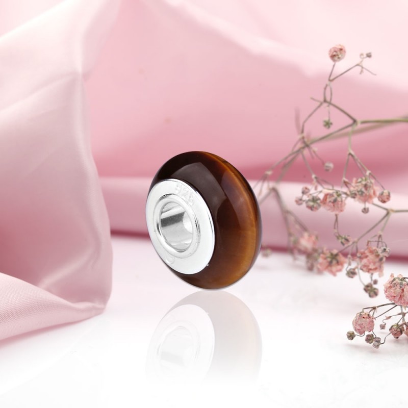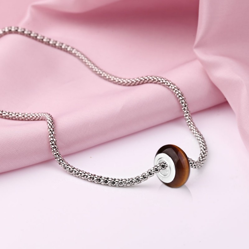 Um pingente encantador - um corredor feito de prata esterlina 925, habilmente decorado com um encantador olho de tigre! Este corredor é perfeito para colocar uma pulseira ou usar como pingente em uma corrente. O produto vai enfatizar a ternura, feminilidade e charme de sua dona!