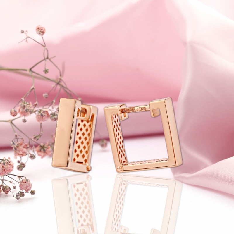 Brincos em ouro vermelho 585. Estes elegantes brincos feitos de ouro vermelho 585 foram criados para enfatizar suavemente a beleza natural do usuário. O formato elegante e a superfície refletiva perfeitamente polida conferem à joia um visual moderno, mas maravilhosamente feminino.