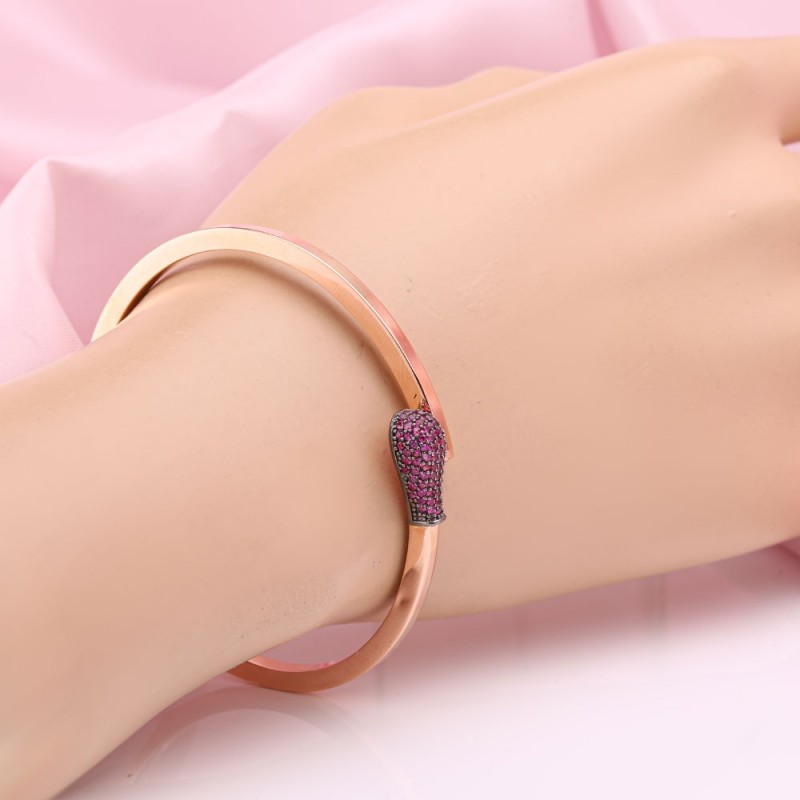 Pulseira em ouro vermelho 585 em ouro russo na Alemanha com zircônia. Elegante pulseira de argola feita em ouro rosa com detalhes enegrecidos e inserções de zircônias coloridas brilhantes. Decore perfeitamente as mãos graciosas das mulheres!