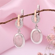 Brincos de prata com ouro, zircônia e quartzo rosa. Brincos encantadores feitos em prata de lei 925 com ouro 375, decorados com zircônias brilhantes e quartzo rosa. Se você deseja enfatizar a feminilidade, a graça, o sorriso e a beleza, este produto é para você.