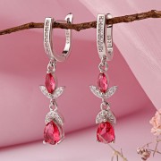 Compre brincos de prata com zircônia. Estes brincos confeccionados em prata de lei 925 com zircônias vermelhas impressionam pela sua elegante composição vertical, em que cada elemento flui harmoniosamente com o seguinte.